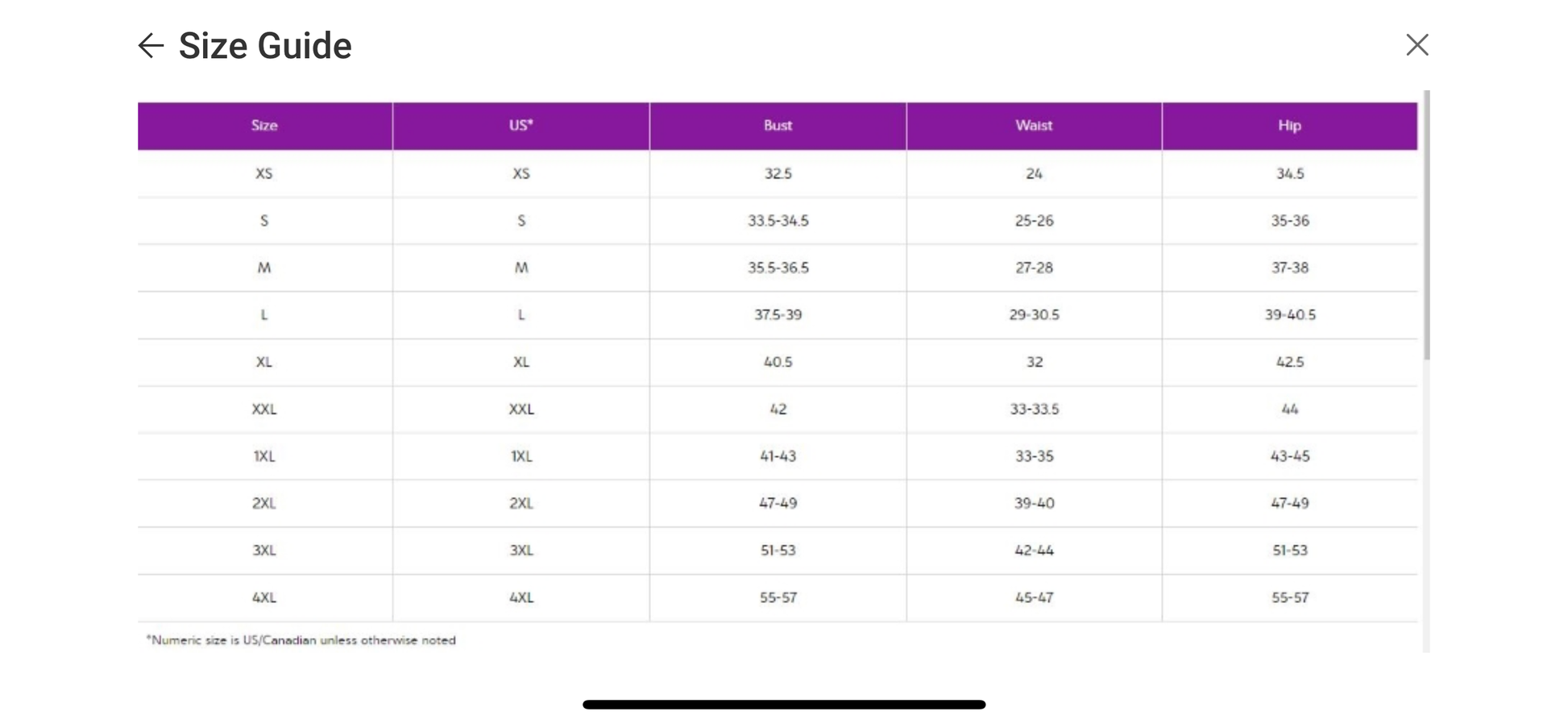 View sizing guidelines prior to checkout.